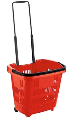 Plastic Shopping Basket Trolley With Aluminum Handle